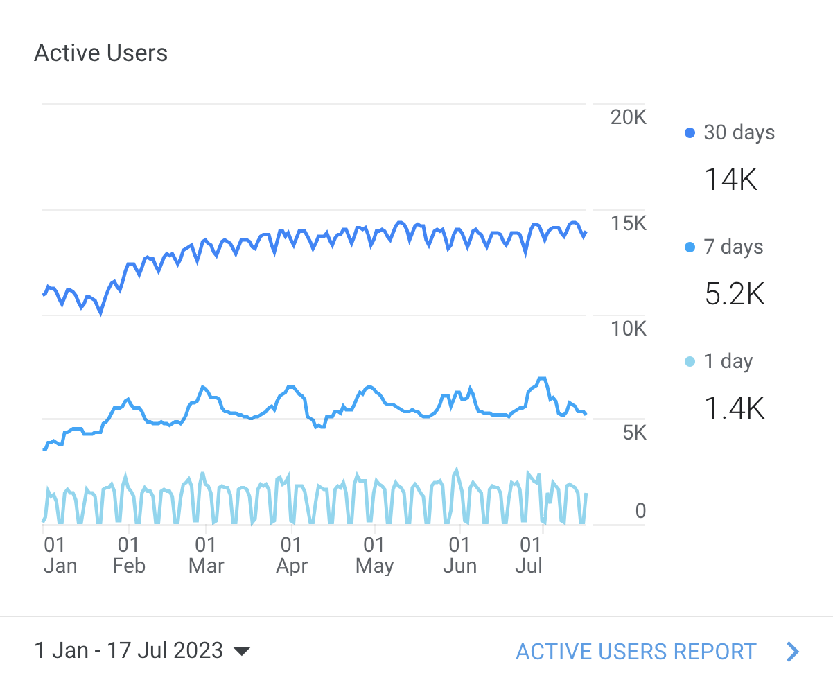 The old GA charts used color palettes that used different shades of the same hue family (blues, purple-blues, lighter & darker tones of blue and purple). This color pallettes usually work better for color blindness and when having charts with less data points. Monochromatic color schemes preserve the “distance” or contrast between the colors and therefore don’t cause issues for color blind people. But if they don’t contain enough contrast between the colors they can be pretty difficult to distinguish.